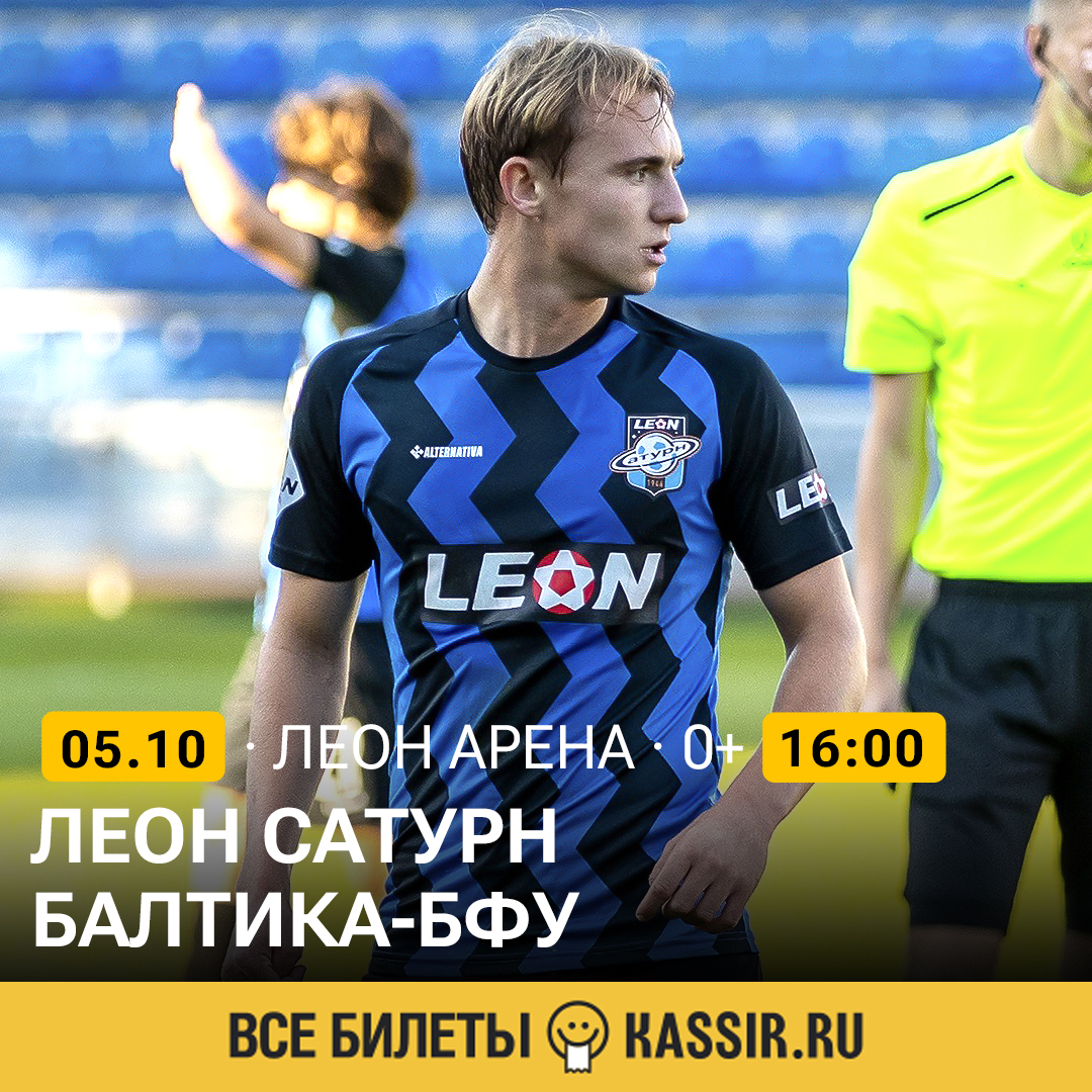 Билеты на игру 26-го тура LEON-Первенства России по футболу среди команд второй лиги «Б» (группа 2) «Леон Сатурн» - «Балтика-БФУ» будут продаваться в день матча – в субботу, 5 октября, с 14 часов 30 минут в кассе Южной трибуны стадиона «Леон Арена» (со стороны бассейна – наличный и безналичный расчёт) и в кассе Восточной трибуны (у центрального входа со стороны городского парка). Обращаем ваше внимание, что в дополнительной кассе со стороны парка продажа осуществляется только по эквайрингу (безналичная оплата картой). Со стороны бассейна – как наличный, так и безналичный расчёт.