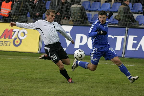 Кристиан Данча выбивает мяч, опережая Симона Вукчевича.