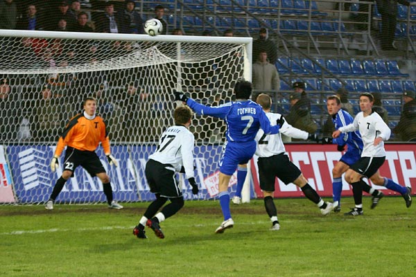 90+2 минута. Только что вышедший на поле Спартак Гогниев бьет по воротам «Торпедо».