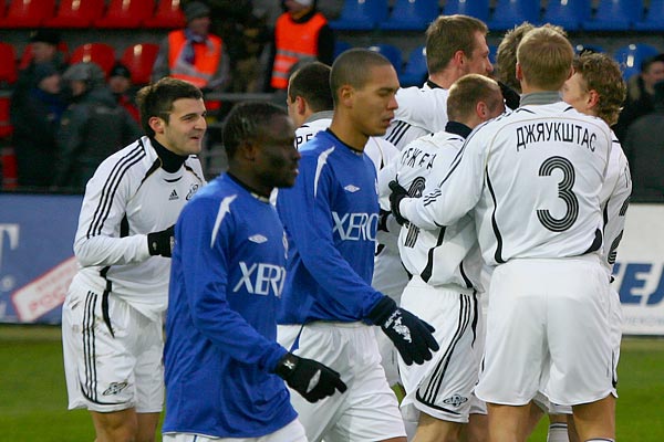 Сатурновцы радуются, а защитники «Динамо» расстроены.
