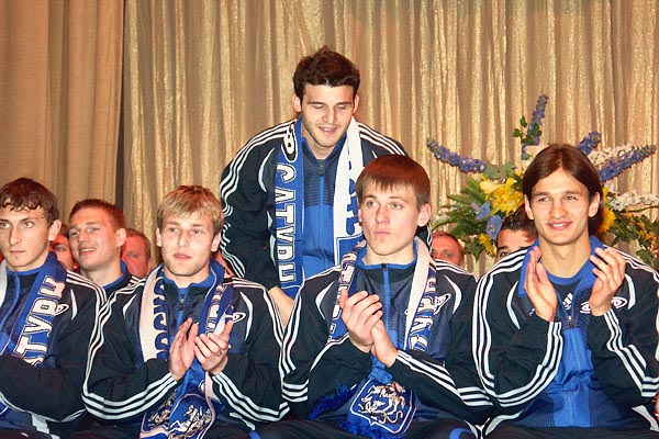 «Сатурн» сейчас - это сплав молодости и опыта. В первом ряду слева направо: Игорь Шестаков, Алексей Житников, Артем Ребров, Ренат Сабитов, во втором ряду: Роландас Джяукштас и Симон Вукчевич.